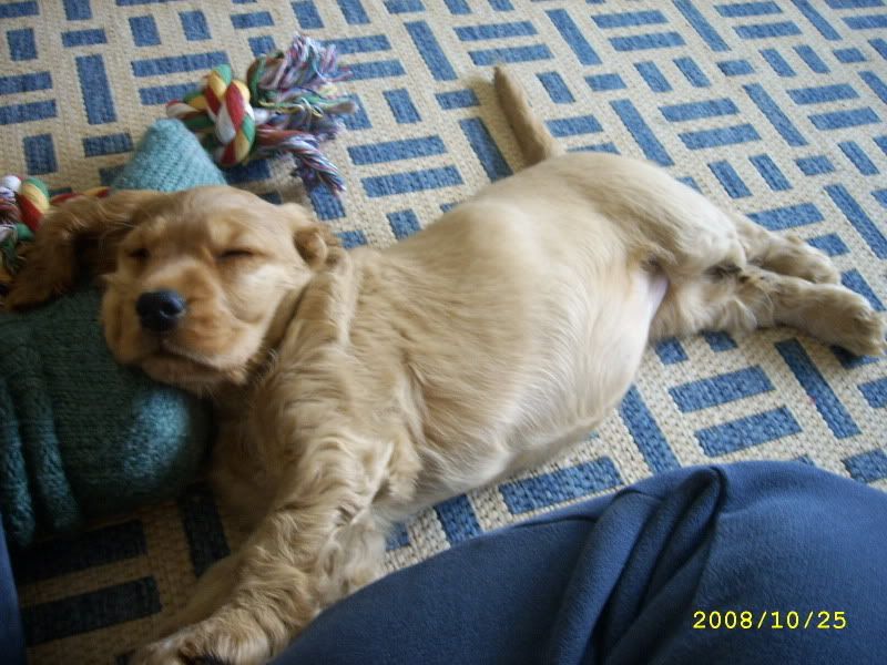 Viikonloppu menikin sitten pissakakkasiivousshowssa, syöttämisessä, leikittämisessä ja ulkoilun harjoittelussa. Sekä tietenkin sen jännittämisessä, miten kissa mahtaa suhtautua uuteen tulokkaaseen. Pelko oli aiheeton: minkäänlaista aggressiivisuutta ei ole havaittavissa (kummankaan taholta, vaikka koiran taholta ei sitä nyt odotettukaan). Kissaa kyllä ärsyttää pennun tapa kohkata joka suuntaan, mutta kun pentu on oikein väsynyt tai nukkuu, kissa tulee haistelemaan. Eilen kissan makoillessa portaiden alapäässä koira kohkasi kauempaa katsomaan ja kissa ilmoitti mielipiteensä moisesta käyttäytymisestä läppäämällä pentua päähän - mutta pehmeällä tassulla. Koira tuntui siitä jo joksikin aikaa tajuavan, että pitäisi ottaa vähän rauhallisemmin. Veikkaisin, että parin viikon sisään ollaan jo kavereita. :)