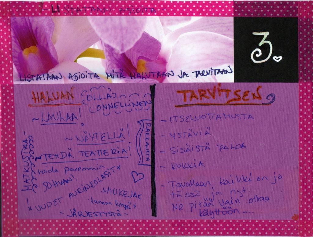 Yhden päivän kanssa tappelin pari hetkeä, kun ei vaan tullut mieleen mikä olisi se "mun juttu". Nukuin yön yli ja sitten se vaan tupsahti, miten sen pitää mennä, kun katselin mun askartelumateriaalistoa.