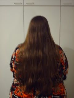 Marenkienkeli, itse lopetin hiusten värjäämisen kesällä/syksyllä 2006 ja vielä on jonkin verran latvassa värjättyä hiusta. Olen muutaman kerran leikkauttanut hiuksia melko paljon pois, mutta hitaasti se oma väri on tullut. Pituus on tällä hetkellä tämä. En tiedä, miten nopeasti sulla kasvaa hiukset, toivottavasti nopeammin ku mulla. :D